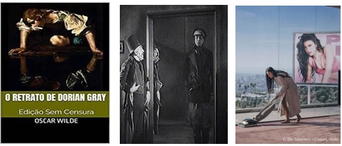A segunda dimensão significativa que sobressai do filme é algo que chamaríamos de “complexo de Dorian Gray”, remontando à obra de Oscar Wilde, O Retrato de Dorian Gray (1889), conforme inferimos acima e diz respeito ao medo do envelhecimento e da morte, o culto exacerbado do corpo e a ânsia pela longevidade. Aqui o narcisismo é o contrário da autoestima.