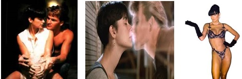 Todavia, em Ghost, uma imagem marcante é fixada na memória do público, com enorme sensualidade, numa das cenas mais eróticas da história do cinema: Molly Jensen (Moore), jovem, bela e fisicamente excitada está sentada no colo do parceiro Sam (Swayze), e este transpira sem camisa, enquanto ela modela um vaso de argila que gira frenético num torno, simbolizando o movimento febril de um ato sexual, ao som da melhor trilha sonora de motel “Unchained melody”.