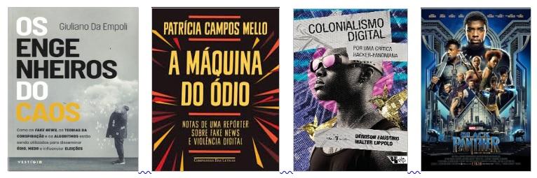 Grande parte das atitudes mundiais tem ganhado forma nas atitudes agressivas, cultura do ódio, cancelamento e linchamento virtual: são expressões recentes da “pulsão de morte”, verve predatória e irracionalidade coletiva, agora tudo on line. É preciso enfrentar, denunciar, combater as instâncias sombrias da ignorância, preconceito e perversidade, como nos livros: Os Engenheiros do Caos (2019), A Máquina do Ódio (2020) e Colonialismo Digital (2023). Eis três sistemas de resposta eficazes: o primeiro enfrenta a ameaça da big tech, big data e a midiofagia das megaempresas digitais que devoram tudo como pragas de gafanhotos; o segundo enfrenta o “gabinete do ódio” nacional, na denúncia dos nazifascistas brasileiros, desde as operações tecnológicas ilícitas no Palácio do Planalto; e o terceiro explora o racismo em rede, a tecnologia do mal, o colonialismo digital e mostra alternativas. Desse modo, o livro enfatiza a luta, que de certo modo, vimos no cinema, em filmes afrofuturistas, como Pantera Negra (2018).