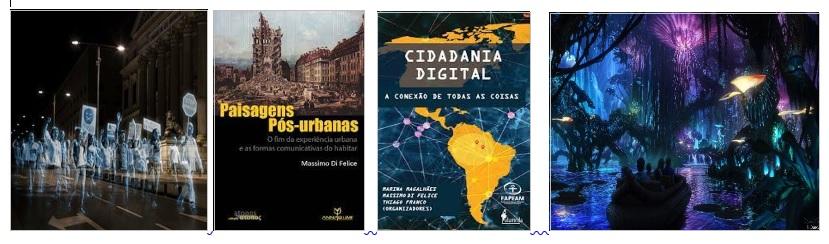 E finalmente o projeto Cidadania Digital – A Conexão de todas as coisas (DI FELICE; FRANCO E MAGALHÃES, 2023) é algo singular, pois trata da Ecopolítica, uso da tecnologia em benefício da ecologia, e explora as lutas dos povos originários, ambientalistas e bioativistas fortalecidas pela inteligência cognitiva conectada. Dos Ciborgues Indígenas (2007), às Paisagens pós-Urbanas (as formas comunicativas do habitar), até a utopia da Cidadania Digital, o grupo de pesquisa Atopos-USP (DI FELICE et al) abre amplas janelas para refletirmos sobre o ciberespaço, para além do seu lado útil ou nocivo, doce ou amargo. O vigor do conjunto da obra relembra o filme Avatar (2009), onde todas as coisas, gente, bichos, árvores estão em conexão. E há o deleite dessas capas finas, inteligentes, coloridas e bem boladas que dão vontade de degustar.