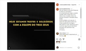 Nas redes sociais, dirigentes do tradicional Bloco Muriçocas do Miramar, de João Pessoa, manifestaram pesar pela tragédia: “Lamentamos profundamente pelo trágico acidente ocorrido nesta manhã com o trio elétrico Zeus, levando a óbito três pessoas da equipe e deixando outros feridos. A equipe do Zeus sempre esteve nas nossas quartas-feira de alegria. Hoje estamos tristes. Esperamos que a luz divina traga força aos familiares enlutados para atravessar esse momento.”