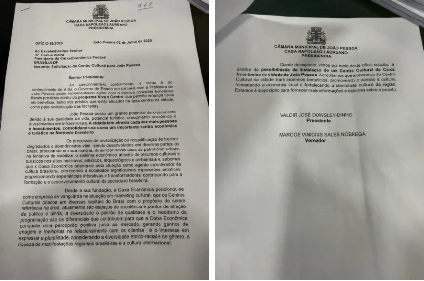 O ofício com o pedido direcionado à Caixa foi assinado e entregue pessoalmente a Carlos Vieira pelo presidente da Câmara de João Pessoa, Dinho Dowsley (MDB), e pelo vereador Marcos Vinícius (PDT). A audiência, em Brasília, ocorreu no dia 2 de julho do ano passado.